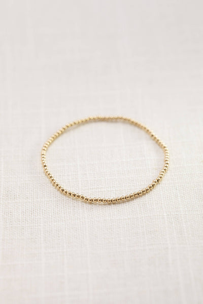 Handcrafted stretch bracelet made with 14k gold filled beads made by artists in the USA. Length - 6.5 inches.
