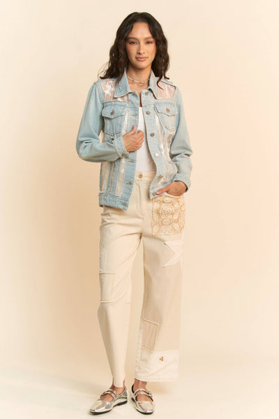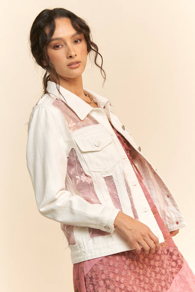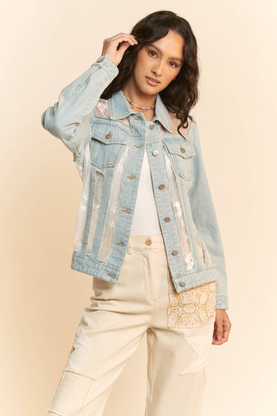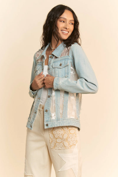 Elevate casual style with our Patchwork Lace Denim Jacket, blending soft denim with romantic floral lace panels. Featuring distressed trim, classic button closures, and a relaxed fit, this versatile piece layers effortlessly over dresses or tees. Perfect for boutique buyers seeking unique, wearable charm with a modern twist.