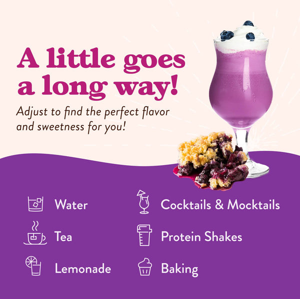 Our Sugar Free Blueberry Cobbler Syrup captures the essence of ripe, juicy blueberries nestled in a warm, buttery cobbler crust. Each sip transports you to a cozy kitchen filled with the aroma of freshly baked treats. Whether you're flavoring your morning coffee, enhancing your afternoon protein smoothie, or mixing up the most delicious happy hour martini, this syrup is sure to satisfy your cravings.