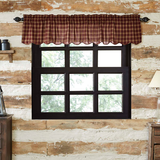 Help define your country space with the Kendrick Prairie Curtain Set. The scalloped bottom edges finish the rustic dark red and tan for casual elegance.