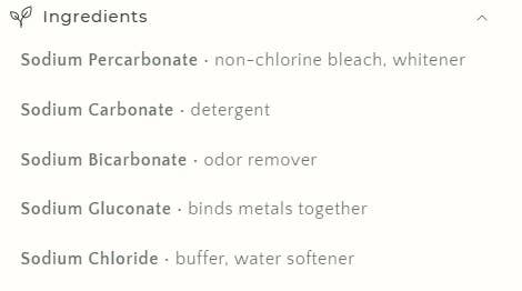 Sodium Percarbonate, Sodium Carbonate, Sodium Bicarbonate, Sodium Gluconate, Sodium Chloride